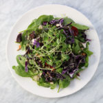 On a plate, assemble your salad by combining all the ingredients. Dress with poppy seed dressing.