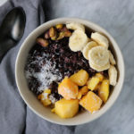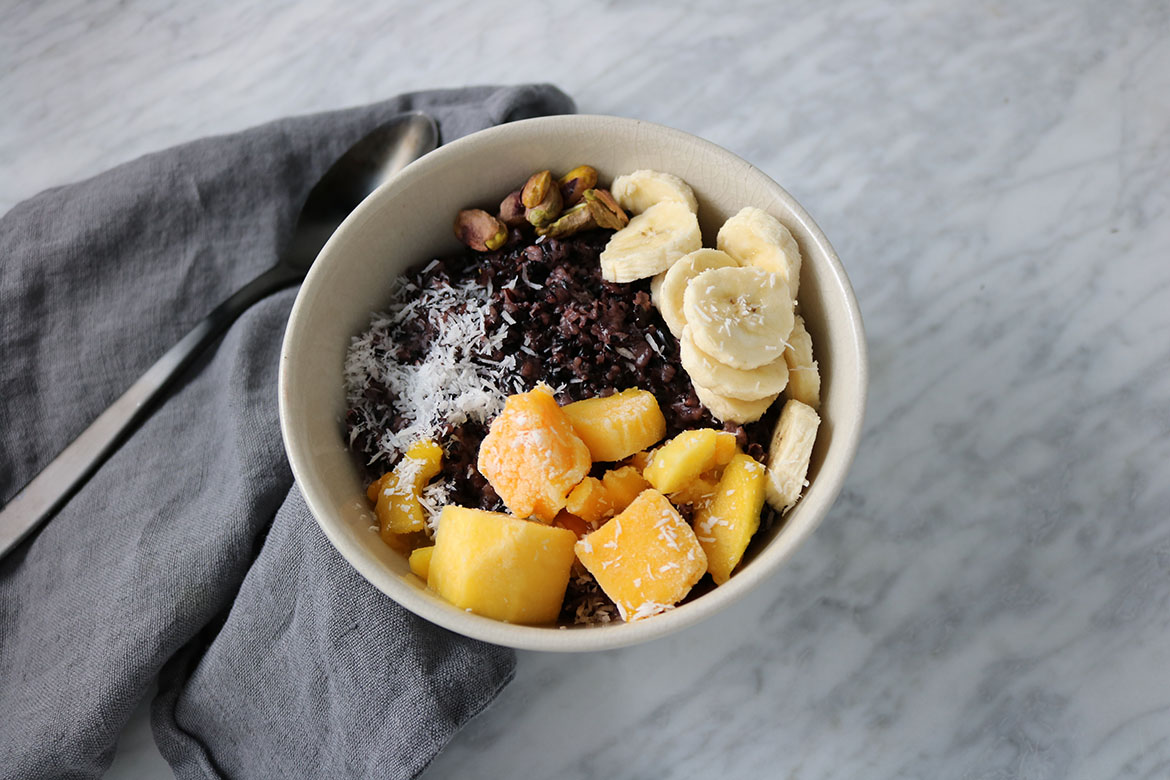 Drain and rinse soaked black rice. In a small pot, put rice, coconut milk, water, and sea salt. Bring to a boil. Reduce heat to low and simmer covered for 25 minutes, stirring occasionally. Add a drizzle of maple syrup and stir well.