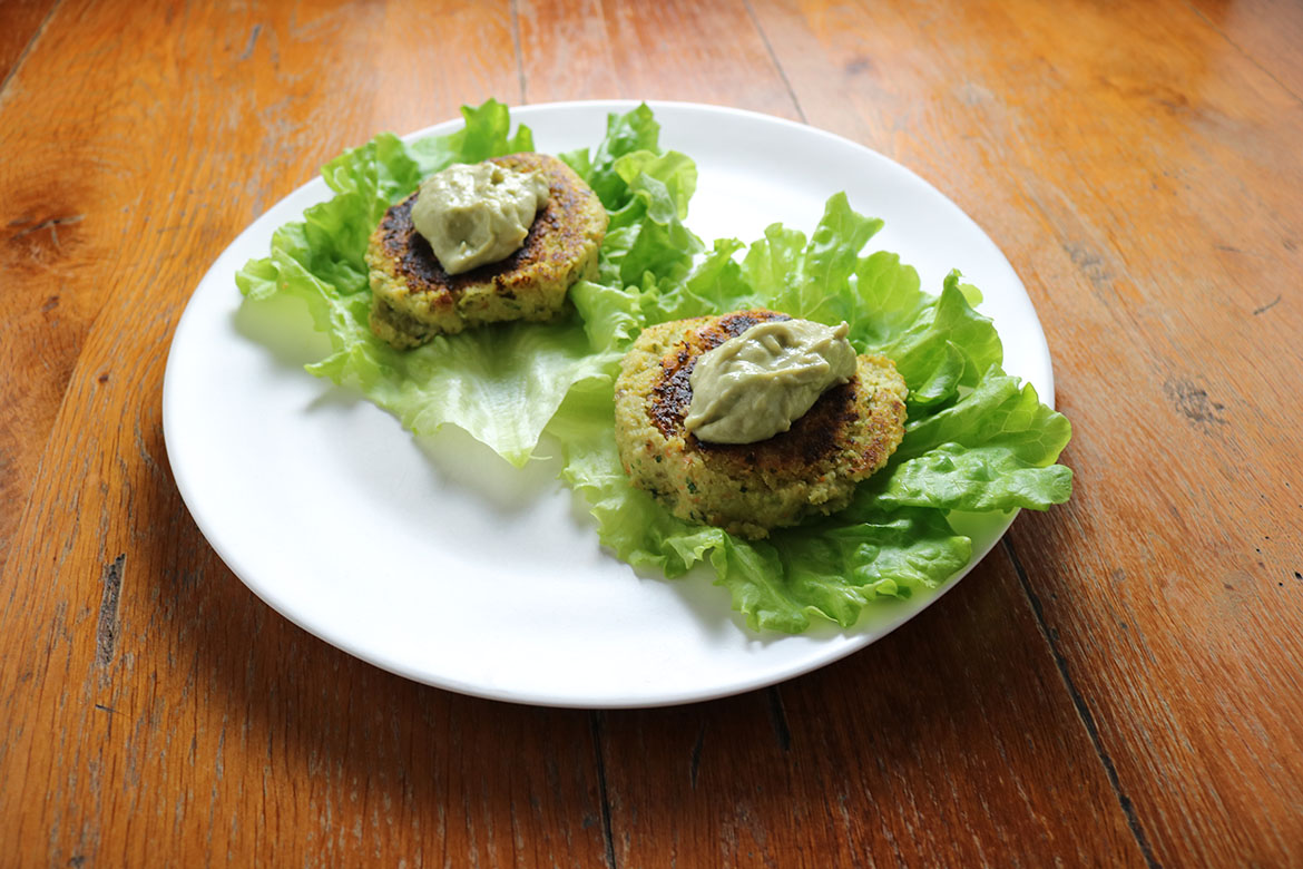 Wash and dry butter lettuce leaves. Place on a plate. Put a millet patty on top of each lettuce leaf. Top with avocado tahini dressing. Roll and enjoy!